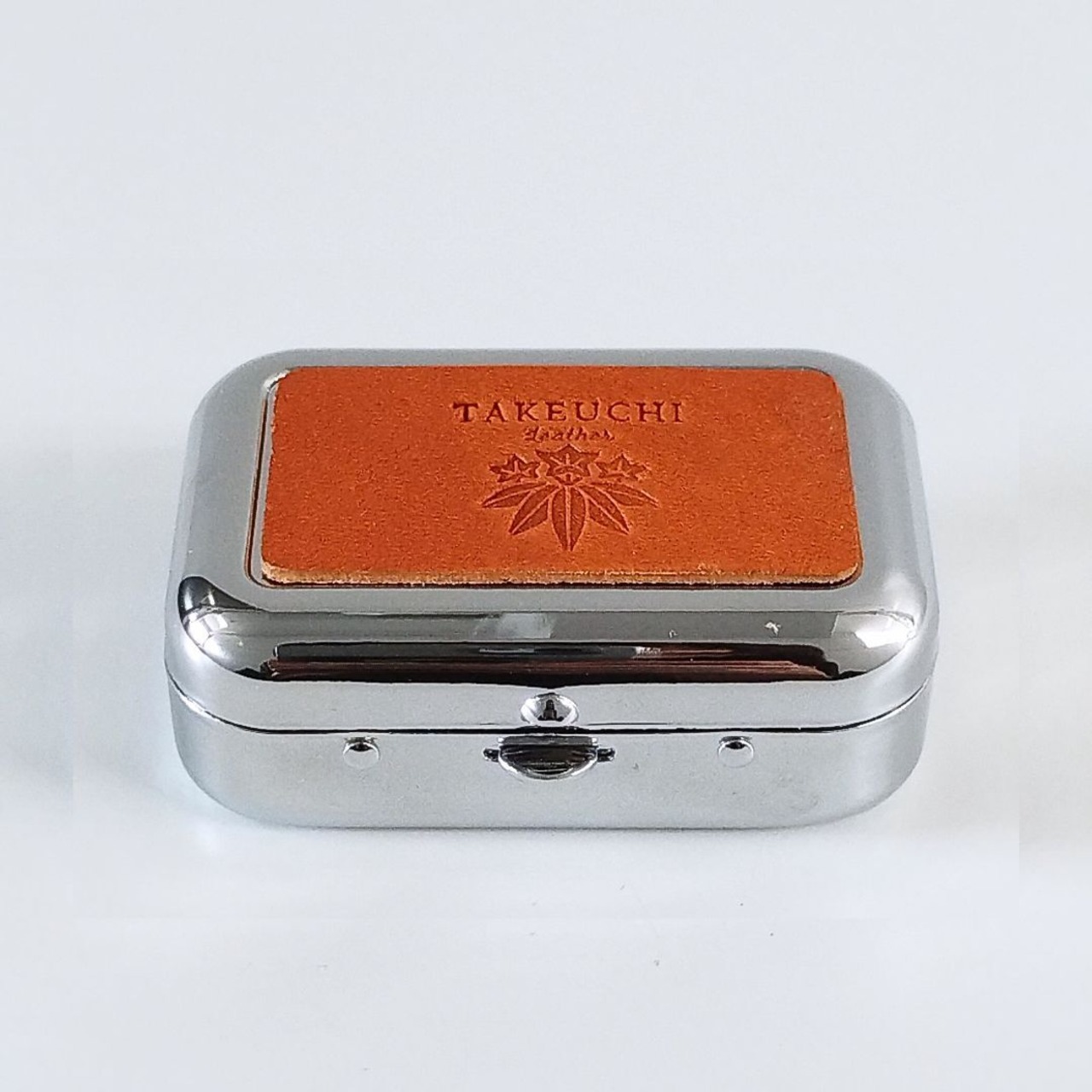 当店の刻印を押した栃木レザーがアクセントの上品な携帯用灰皿です。